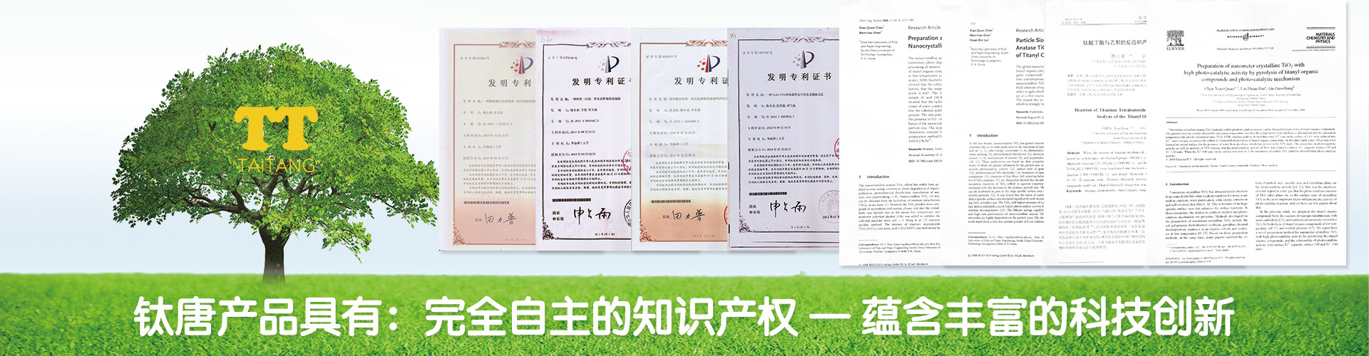 鈦唐科技有限公司是一家擁有豐富自主知識產權的科技型企業,專注于納米二氧化鈦膠體、水氣凈化光催化產品與設備研發、生產與銷售。與廣州鈦唐納米科技有限公司屬一個集團公司。主要產品有納米光觸媒、納米二氧化鈦膠體、光觸媒網、專業型空氣凈化機、各種基質材料納米光催化網(光觸媒網)、工業有機污水深度處理成套設備、工業污水光催化氧化處理用光催化劑、專門的除甲醛產品特效甲醛凈、建筑外墻自潔凈納米噴劑、紡織品防紫外線抗菌整理劑、化妝品防紫外線劑、面料光觸媒、陶瓷專用光觸媒、甲醛異味清除二合一等產品。鈦唐生產基地耒陽市簡介  鈦唐生產基地耒陽市位于湖南省東南部,造紙發明者蔡倫故居,素有“荊楚名區”“三湘古邑”的美譽。耒陽始秦建縣,具有2200多年悠久歷史,最著名的縣令當屬三國龐···